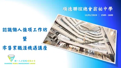 Hello各位好,很高興在這裏向大家分享我的理念,已服務多間知名品牌及企業的我, 一直都是沉浸在人力資源及培訓管理範疇的圈子裏學習及工作。轉眼間已超過20個寒暑。 在2022年,我終於決心創立了自己的HR品牌- (鑽一人才Diamond People)寓意是希望人們透過我們公司的培訓項目或招聘項目,都可以成為或覓得鑽鍊人才。 感恩創業的初期已獲得仁愛堂及教育局的信任, 展開career coaching 有關項目的之作。熱切期待在可見的將來為大家提供人才計劃服務,就正如過去多年我[用心]為各企業服務,我亦承諾會憑着稹累的經驗[用心]為你們服務!